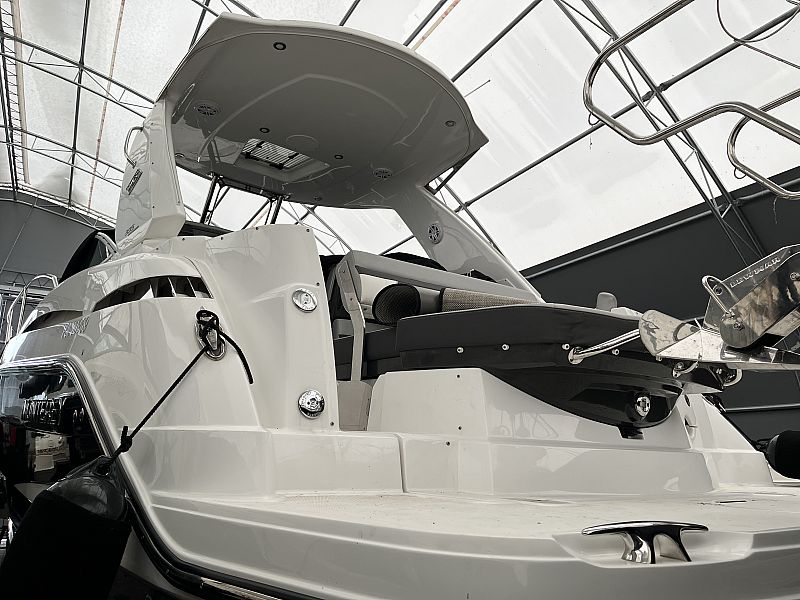 Oferowana jednostka to łódź pochodząca od Polskiego dealera, model 2020, wyprodukowana w maju 2019, dostarczona klientowi we wrześniu 2019, w idealnym stanie, gotowa do sezonu bez żadnych nakładów finansowych. Silniki przepracowały po 75 rbh, jacht regularnie serwisowany.
